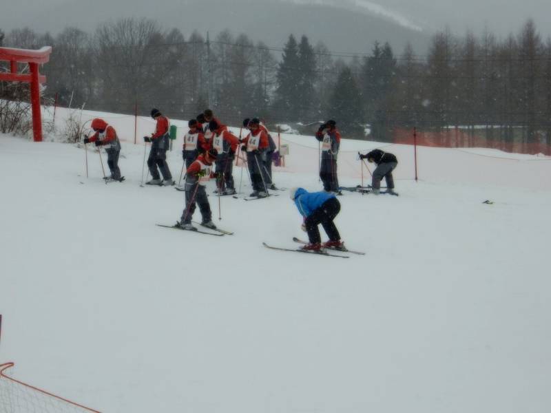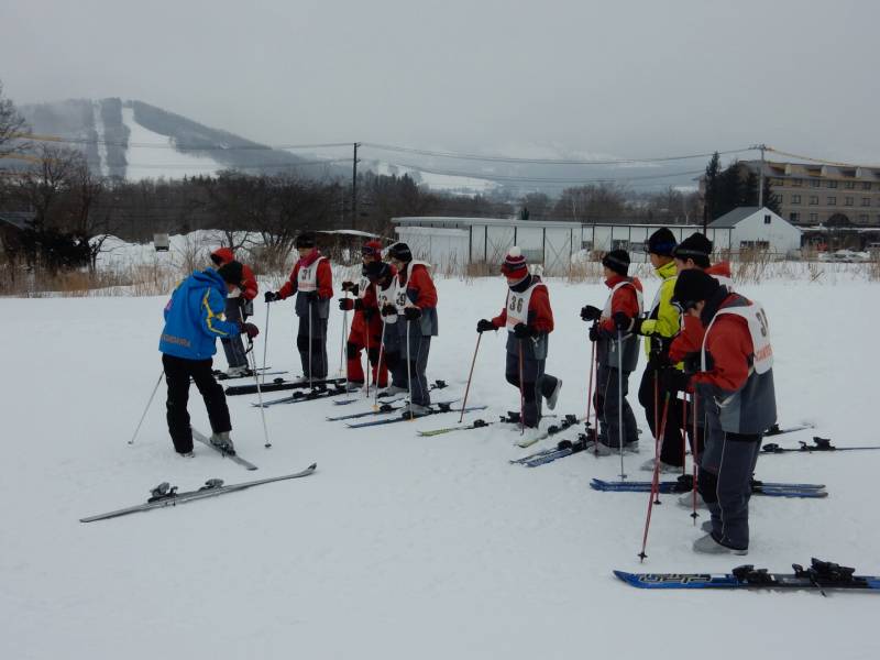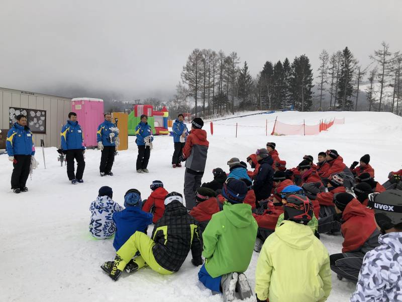 その後、ゲレンデで開校式を行い、5つの班に分かれ講習開始。