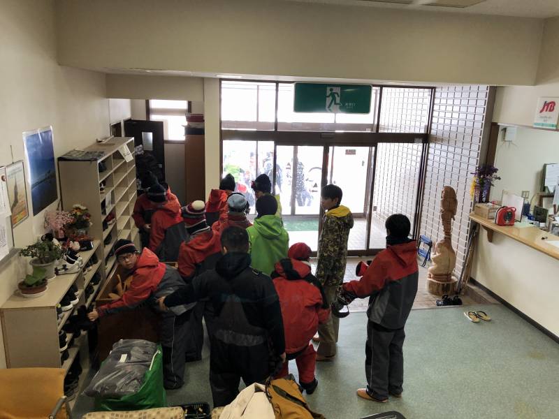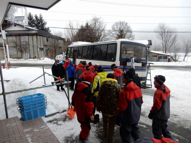 初日の今日は池袋に集合し宿舎に着いて昼食をとり、すぐウェアーやスキーの確認をしました。
