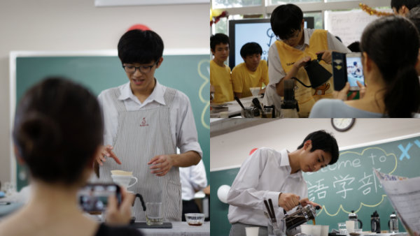 カミーロ先生と言えば「コーヒー」を誰もが連想します。先生は、コーヒーの文化、歴史、そしてコーヒーの淹れ方を英語で教えてくださいました。実際にカフェに行ってコーヒーの本格的な淹れ方や味の違いを学び、お店の人に協力していただき、城北オリジナルブレンドを文化祭で発表しました。先生の情熱に魅せられて、生徒はコーヒーに興味を持つと共に、先生の話す英語を一生懸命理解しようと努力しました。