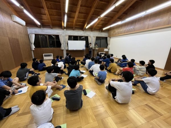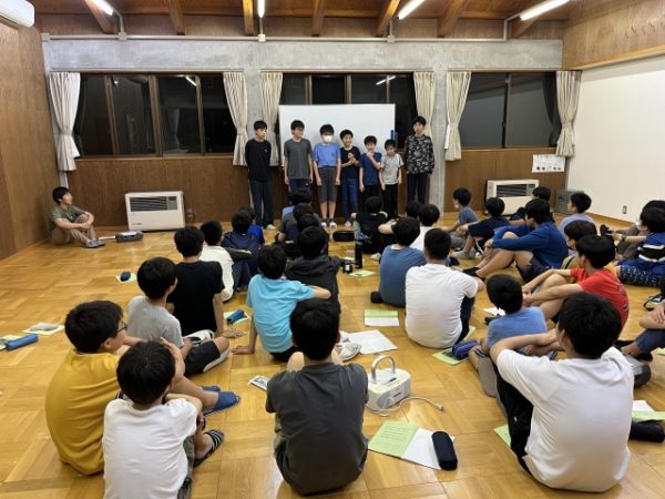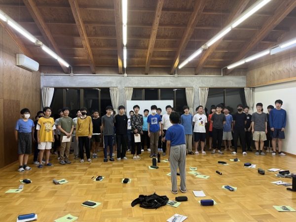 夜には校歌コンクールを行い、最後には全員で合唱祭の課題曲「風になりたい」を熱唱しました。