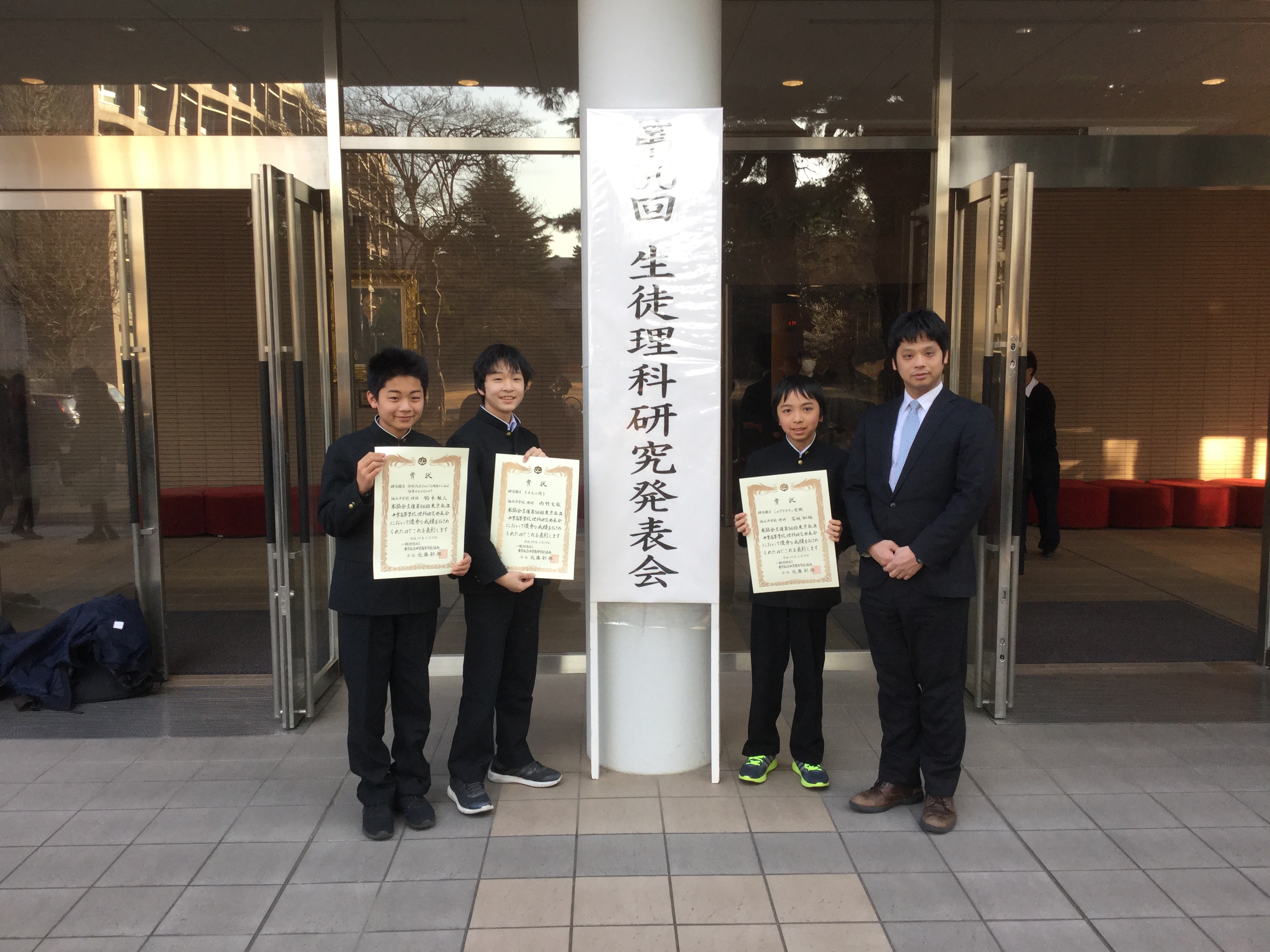 本校からは、昨年の11月29日に行われた中学自由研究発表会の優秀者3名が、この発表会で自由研究の研究発表を行いました。