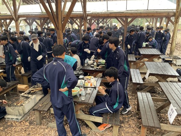 自分たちでゼロから作ったカレーを頬張る生徒たちの顔には、学校では見られない最高の笑顔が溢れていました。片付けまでが学習。最後まできっちりと協力して取り組む姿に、高1生の頼もしさを感じました。