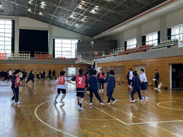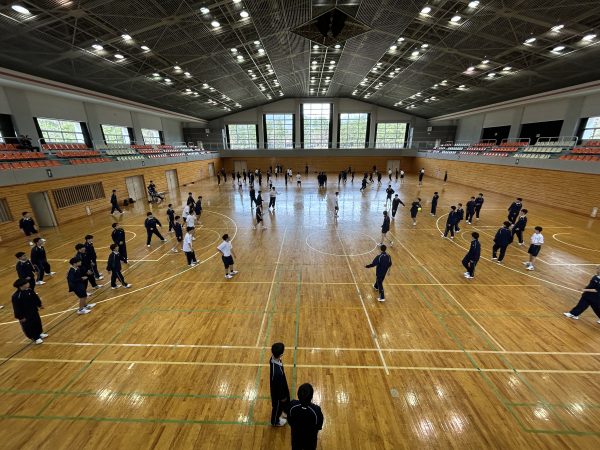 午前中は体育館で班対抗のスポーツ大会です。