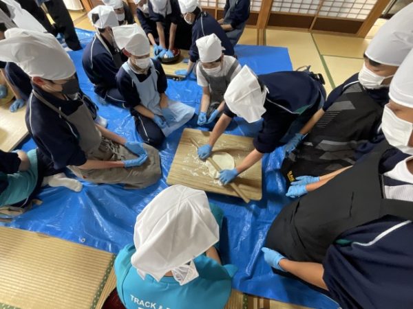 小麦粉から生地へ: 水を加え、力を込めてこねる工程からスタート。「なかなか固まらない!」と苦戦しながらも、徐々にまとまっていく生地に、生徒たちは手応えを感じているようでした。
