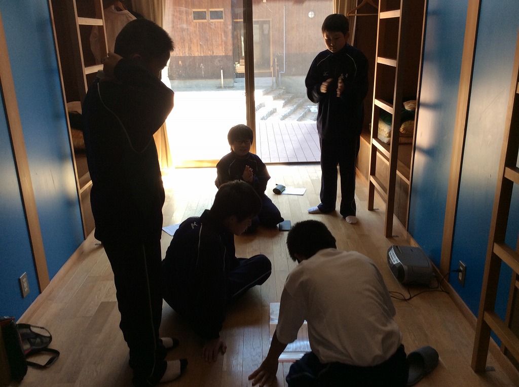 夕食後は、ペーパータワーという遊びを通じて、チームワークの大切さを学びました。