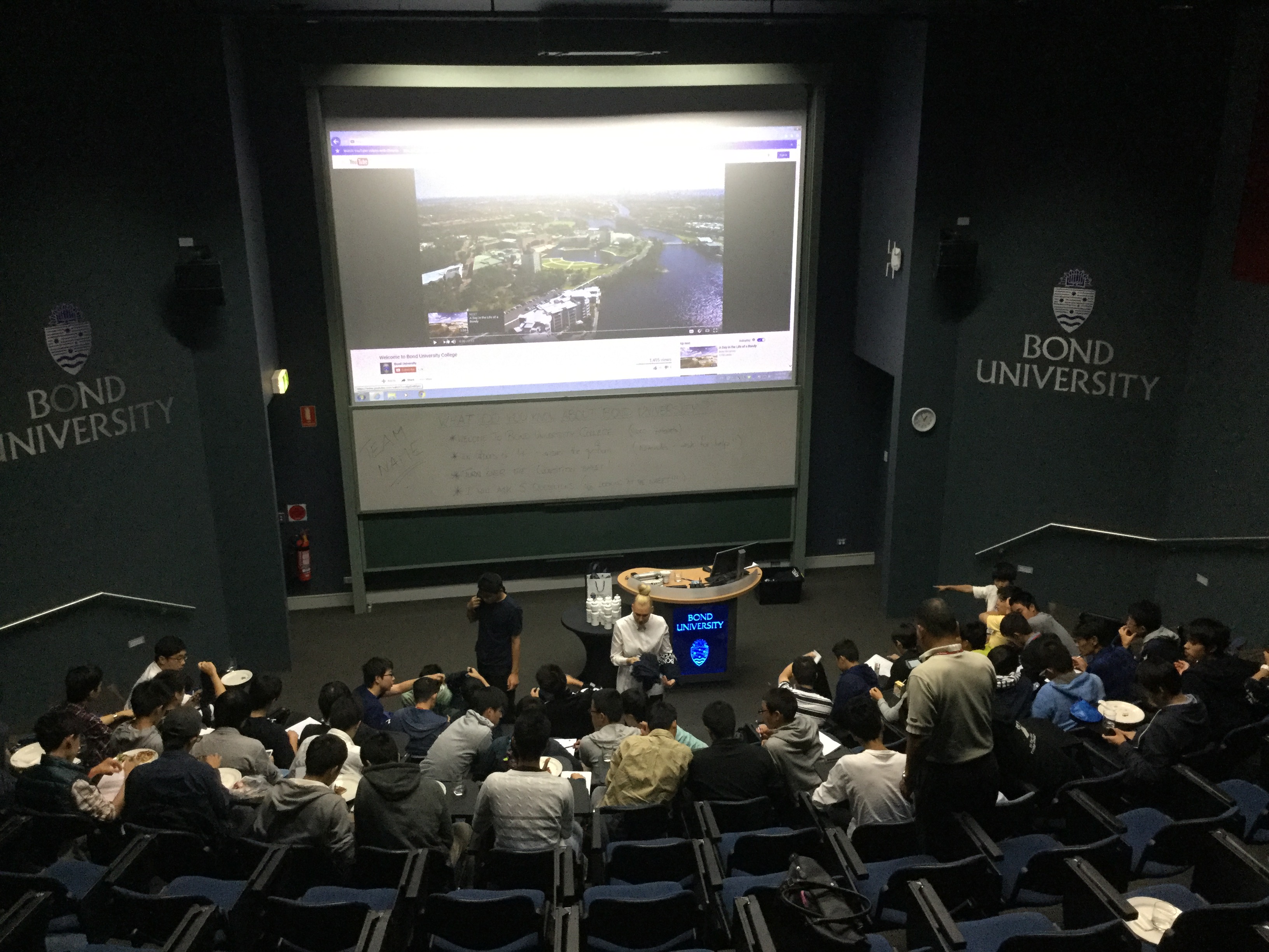 Youtube上でも見ることができるボンド大学を説明する動画を見ながら、12個の質問に答え、最も正解数が多かったチームには大学オリジナルのスクイズボトルがプレゼントされました。