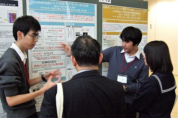 化学部の発表も多くの参加者に興味を持ってもらえたようで、質疑応答も活発に行われていました。