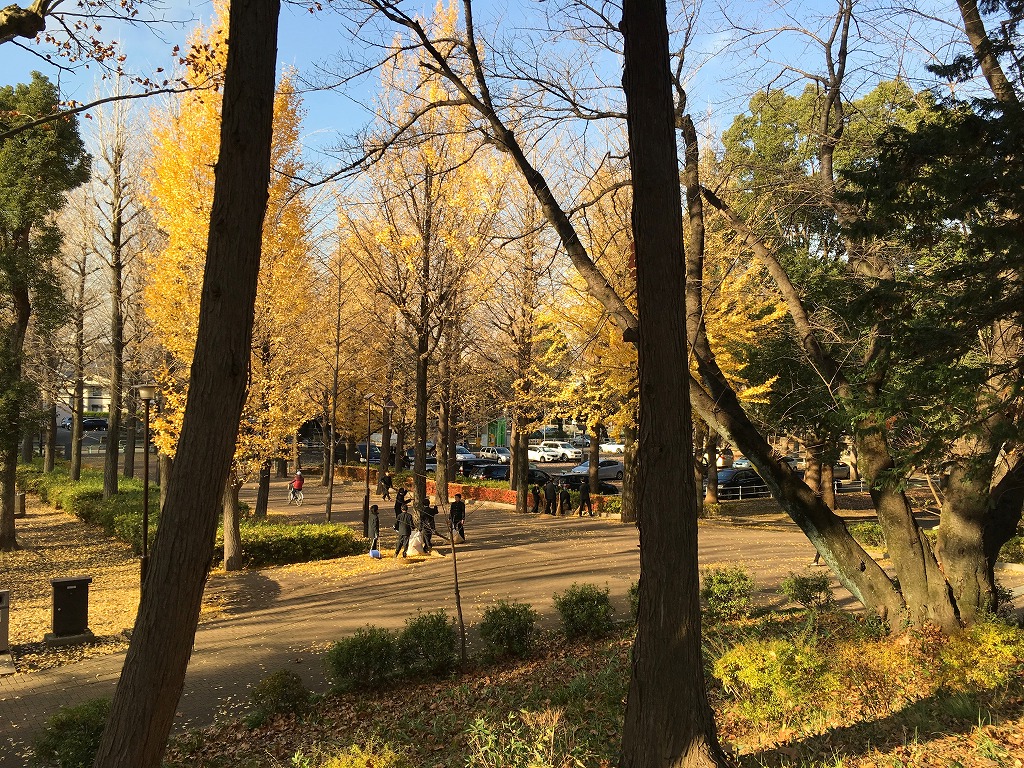 今回は城北公園の地面に落ちた紅葉を拾い集めることが目的です。