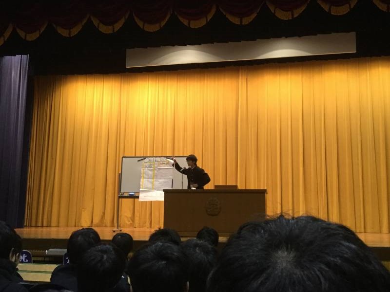 参加者全員がプレゼンをした上で代表者を決め、講堂で発表会をしました。
