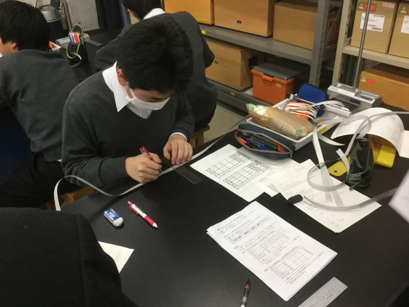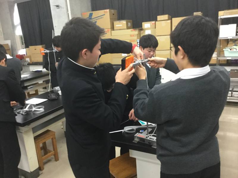 中学3年生の物理・地学の授業で、重力加速度の測定実験を行いました。