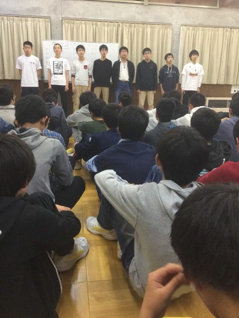 山荘に戻って夕食が済んだら、いよいよ校歌コンクールです。各班とも練習の成果著しく、力強い発表でした。校長先生からの講評でも、例年になくしっかり歌えていたとの言葉を頂きました。