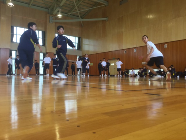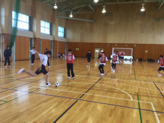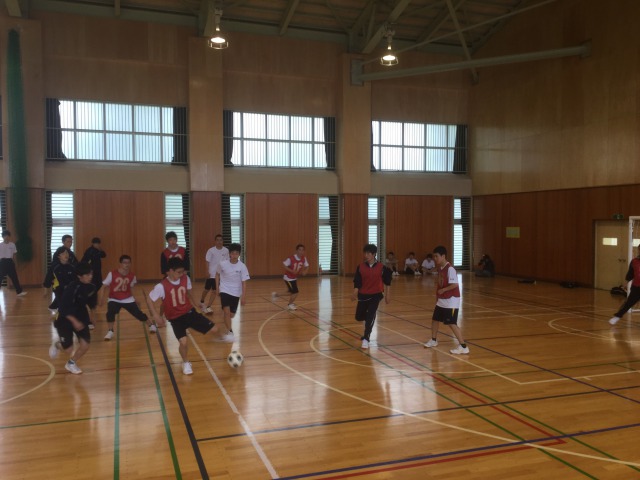 3日目の午前中は、山荘から1時間余歩き大町市の体育館に移動し、ドッジボールとミニサッカーの球技大会でした。チーム編成・試合時間・トーナメント表作りや、生徒への説明は、全て各クラスのHR委員が行いました。それぞれ大変盛り上がりました。