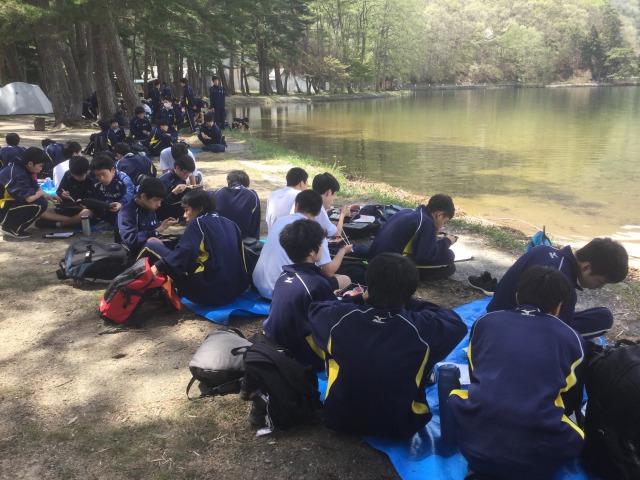 スポーツ大会が終わると体育館近くの木崎湖に移動し、昼食休憩です。
