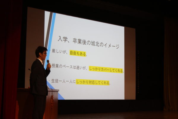 進学指導部長から「城北の大学進学状況と今後の大学入試改革」、