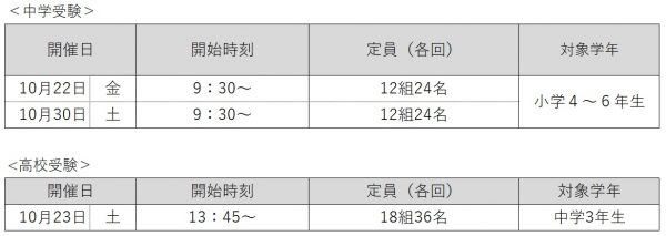 10月15日予約開始分の来場型学校説明会&施設見学ツアーの詳細をお知らせします。(PDFはこちら)