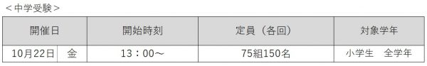 教育理念や校風、学校生活や在校生の様子、そして入試の概要などを ご紹介する説明会となります。