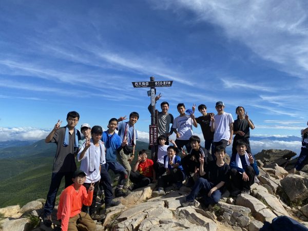 わが山岳ワンゲル部では、山岳という名からもわかるとおり山登りを主にしている体育系の部活動です。皆が自然にふれ合い楽しむということも一つの目的であり、冬季に平地や都会でハイクをしたり、島での山登りやキャンプも行っています。