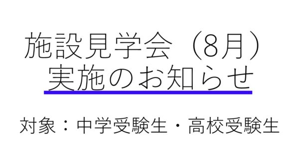 8月施設見学会の実施のお知らせ(中・高受験生)