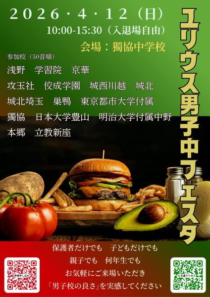 4/12(日)「ユリウス男子中フェス@獨協」に本校も参加いたします!